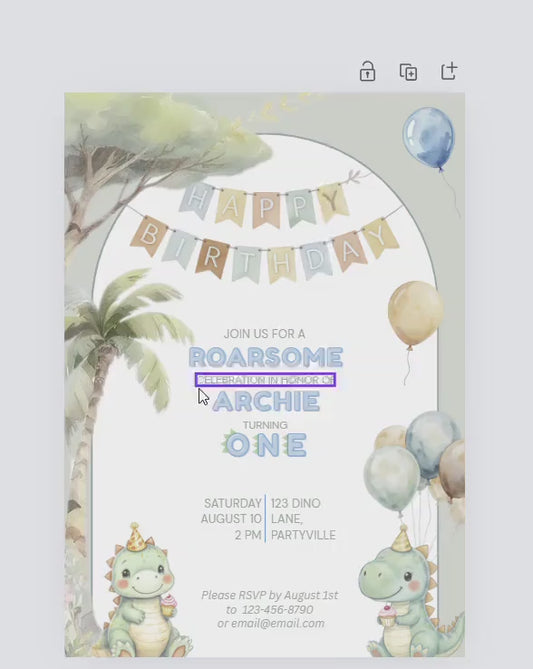 1st Birthday Dinosaur Invitation- Dino Themed (Editable Canva Template Instant Download) -Kids Birthday Party